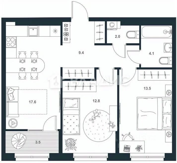 Теплая лоджия- 3,5 кв.м.