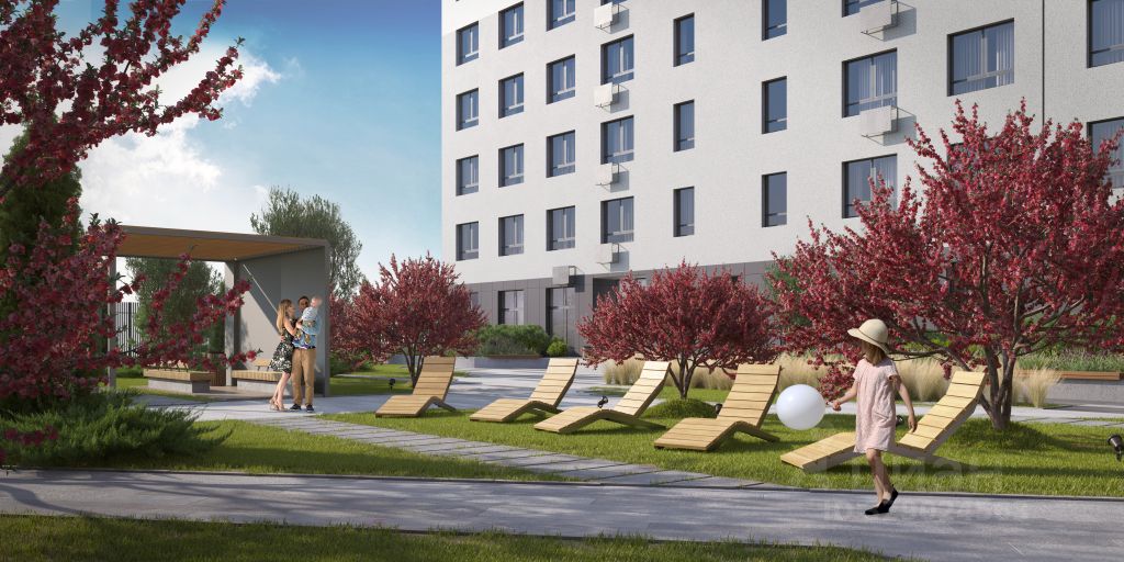 Важные преимущества комплекса: Уютный и приватный двор без машин, закрытая охраняемая территория с озеленением и многоуровневым освещением, система виртуального консьержа, спортивные площадки, лаундж зоны, детские площадки по возрастам с резиновым покрытием, смотровые площадки, предусмотрено помещение для колясочных и велосипедов в подъезде. В шаговой доступности будет построена современная благоустроенная набережная.