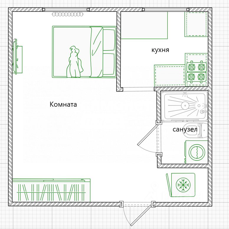 Жилая площадь 17 м²