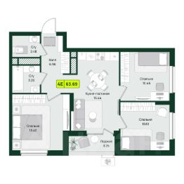 • три отдельные спальни (13.42 м², 10.46 м², 10.10 м²)