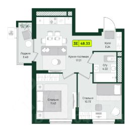 • панорамное остекление лоджии (3.01 м²).