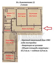 - Общая площадь квартиры с учетом застекленной лоджии 67,5 кв.м. (+ застекленная лоджия 3,8 кв.м.);