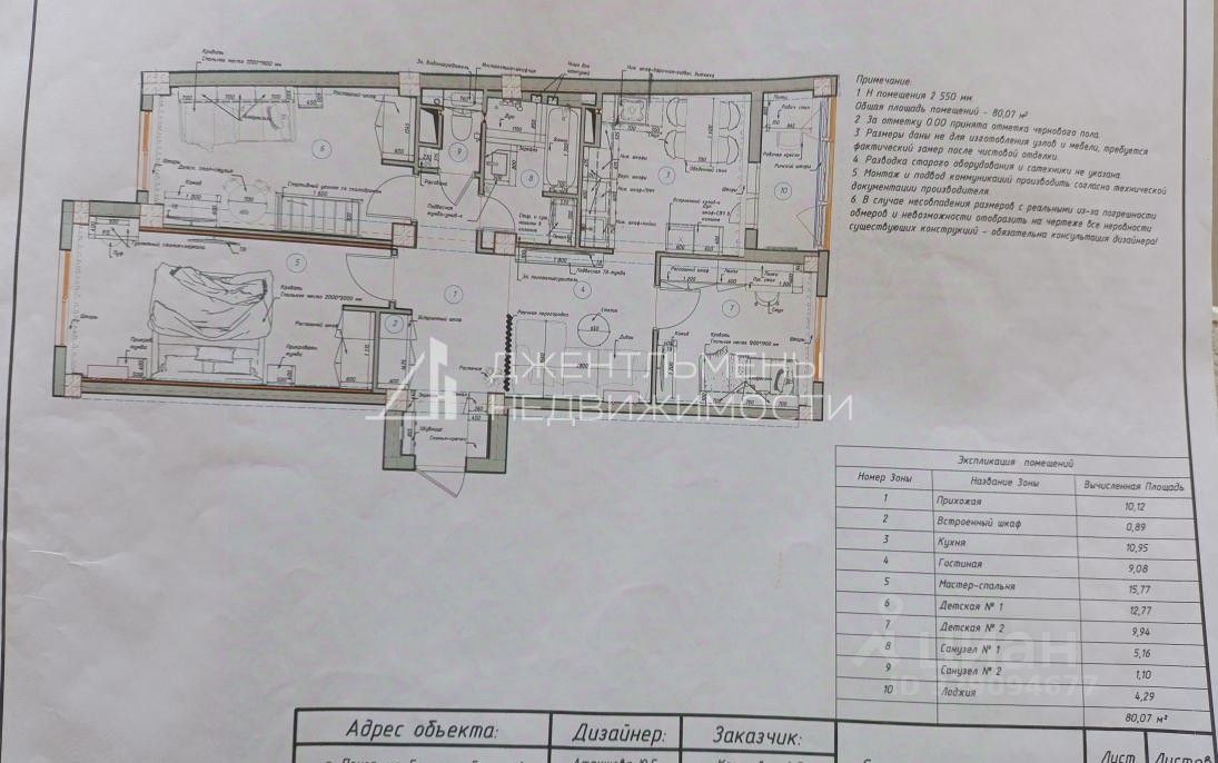 Общая площадь квартиры: 80.07 кв м.