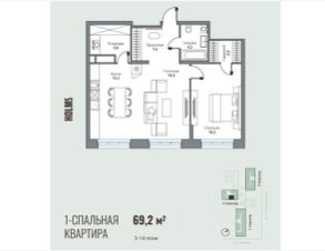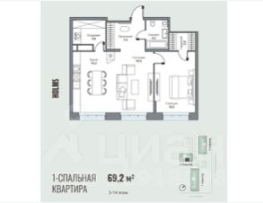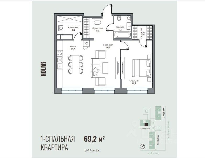 Номер объекта: 550228. Предлагается к продаже стильная квартира площадью 69,2 м² в самом престижном жилом комплексе города — Holms Residence.