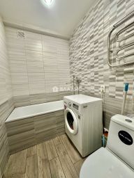 Входная металлическая дверь, установлены межкомнатные двери, пластиковое остекление окон, натяжные потолки, напольное покрытие ламинат,керамогранит,санузел совмещен,в плитке нового образца!