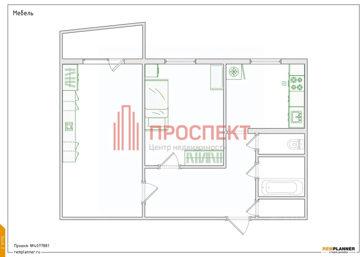Площадь квартиры 53.1 кв.м. + лоджия.