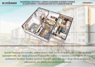 Один из самых популярных вариантов современной недвижимости - это вариант квартиры с просторной кухней, совмещенной с гостиной и двумя отдельными комнатами, которые удалены друг от друга. Такой вариант жилья очень удобен. У родителей и детей есть своя собственная личная территория, и в то же время присутствует место для общего проведения досуга.