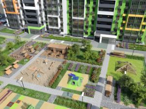 Уникальное благоустройство дворов. Планируются изолированные площадки с игровыми комплексами для детей разного возраста (отдельно - до пяти лет и старше), воркаут-зона с тренажерами, беседки для отдыха взрослого населения.
