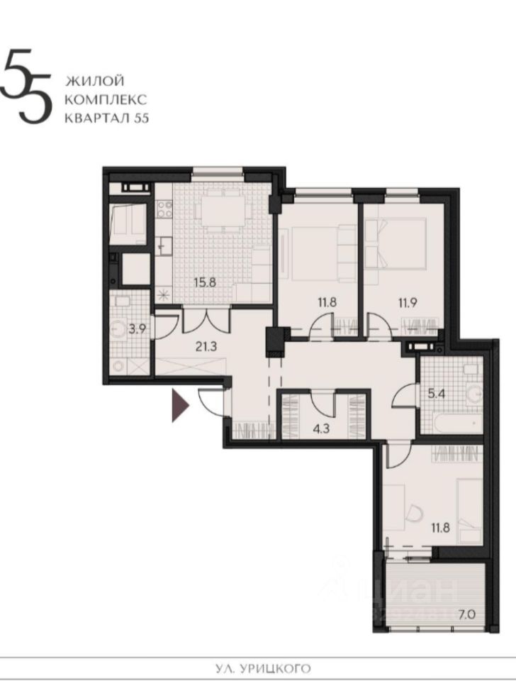 Продаётся видовая 3-комнатная квартира в жилом комплексе бизнес-класса "Квартал 55", по ул.