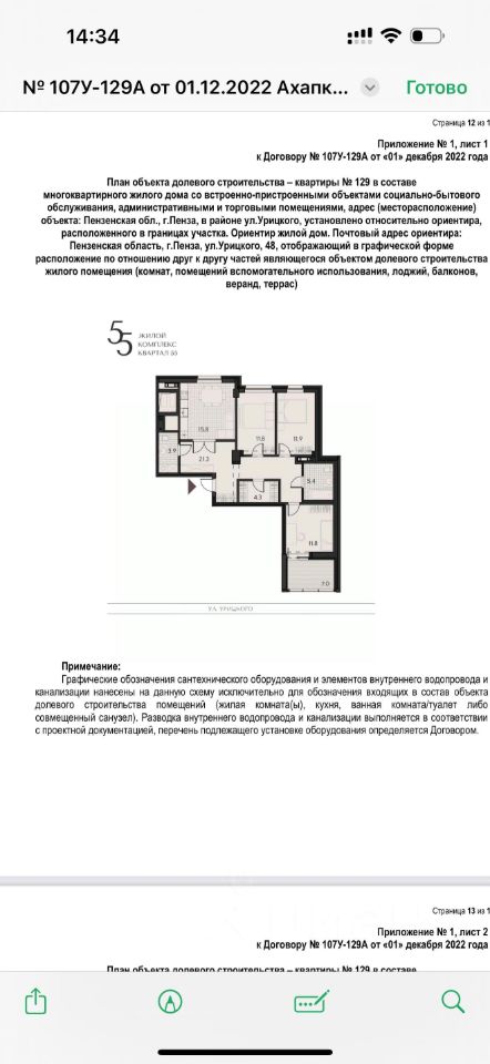 Квартира расположена на 14этаже 18-этажной башни А3.