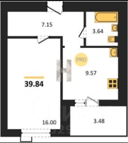 39.84/16/9.57 кв.м. Квартира не угловая и не торцевая.