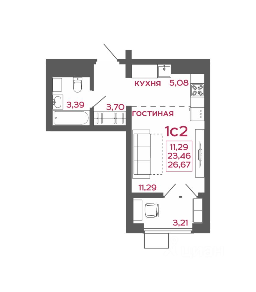 Общая площадь26,67 м²