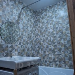 Ванная - кафельная плитка на полу и стенах.