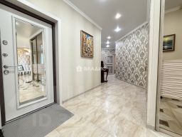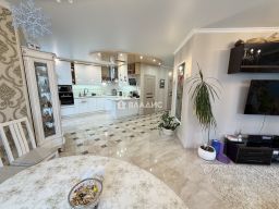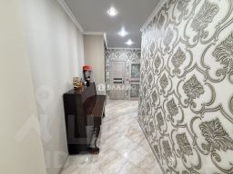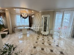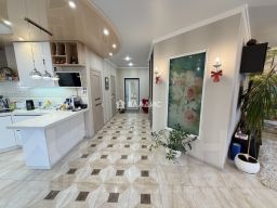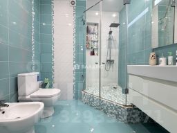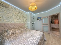 Стены выровнены по всей квартире и оклеены обоями европейского производства. Пол - произведена стяжка, покрытие - высококачественный ламинат 34 класса в жилой зоне, Напольная керамическая плитка - коридор, кухня, гостиная. Натяжные двухуровневые потолки итальянского производства со в строенными светильниками и одиночными люстрами. Санузлы отделаны керамической плиткой, установлена качественная сантехника.