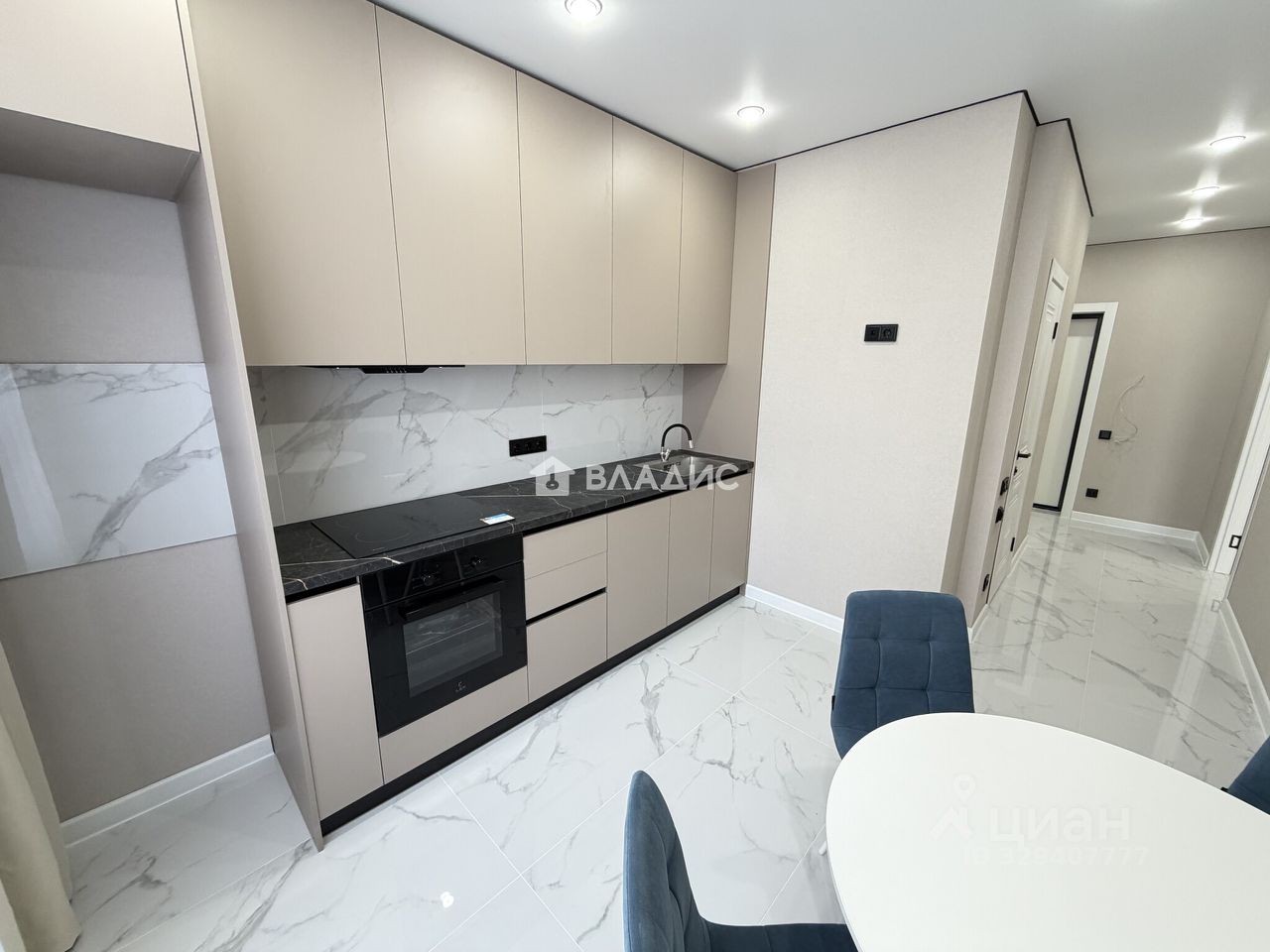 В квартире остается: кухонный гарнитур со встроенной техникой ( посудомоечная машина, духовой шкаф, варочная панель, вытяжка ), стол, стулья, встроенный шкаф в гардеробной.