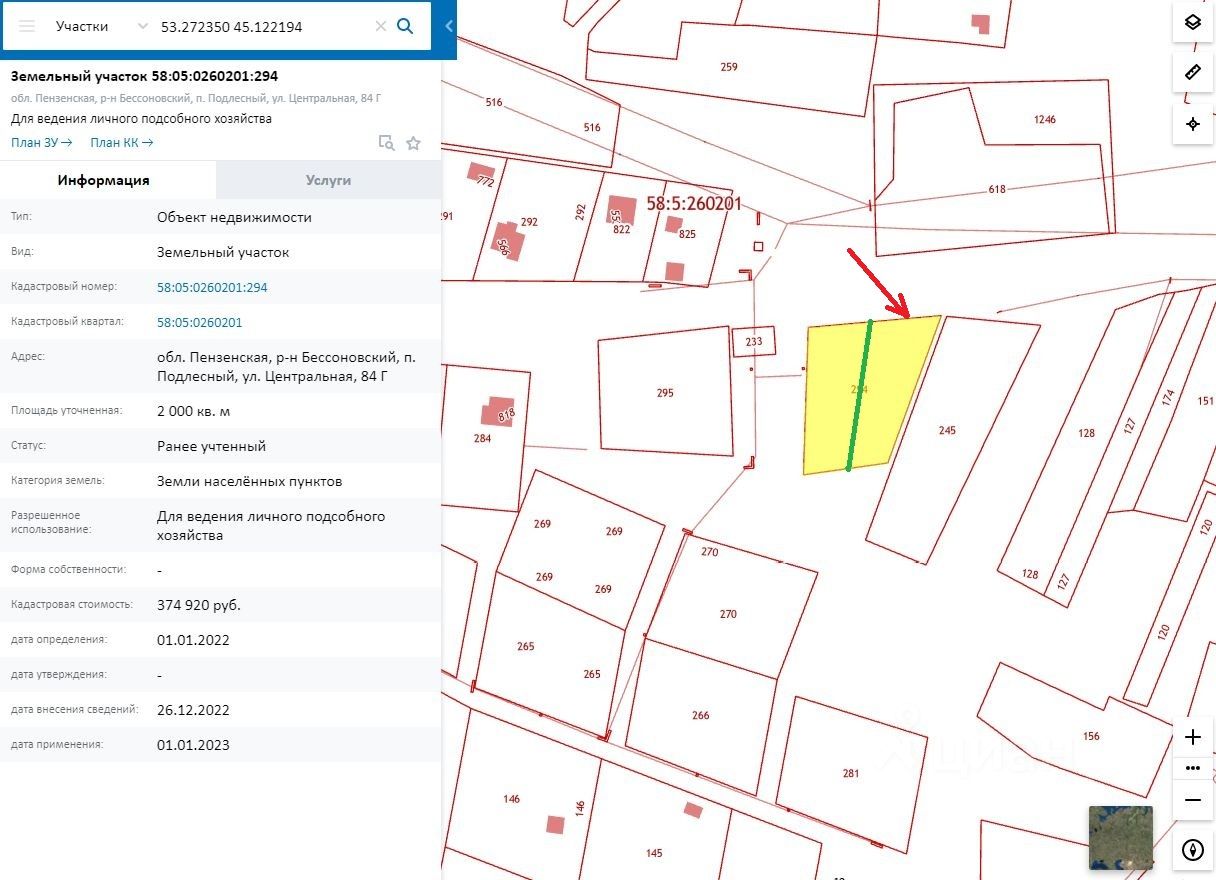 Кадастровый номер участка 58:05:0260201:*** указал продавец