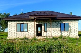 Дом из пеноблока (стены на 300 мм) без отделки, 1 этажный (кухня-гостиная, три спальни, сан. узел, коридор, котельная), общая площадь 101 кв.м.