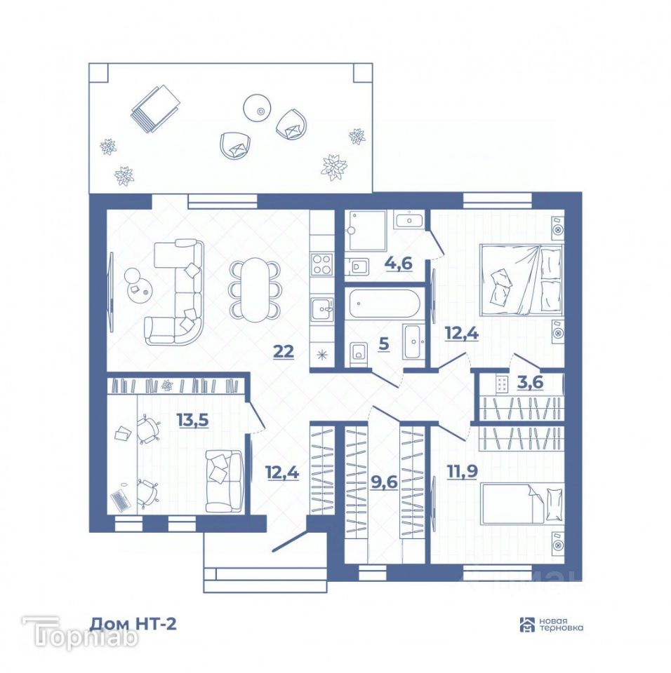 три изолированные комнаты (включая мастер-спальная с индивидуальным санузлом) 13,5 м²; 12,4 м²; 11,9 м²