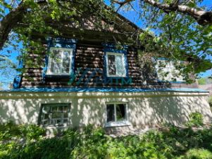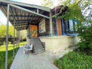 Цокольный этаж дома выполнен из кирпича, верхний этаж - из дубовых бревен, фундамент - бутовый камень, крыша - шифер. Дом одноэтажный, располагается на участке 6,7 соток (в собственности), по факту 10 соток, цокольный этаж очень высокий. Общая площадь дома 89,9 м2, высота потолка 3 м.