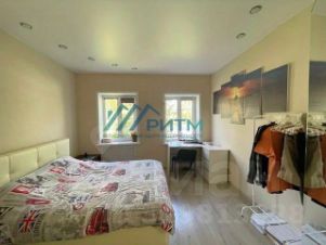 Ремонт в доме выполнен в теплых ненавязчивых тонах. Межкомнатные двери из светлого шпона с зеркальными элементами. Качественные пластиковые окна и натяжные потолки с точечным освещением во всех помещениях верхнего этажа. На полу - износостойкий ламинат, в санузле - керамическая плитка.