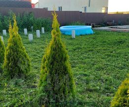 Красивый участок с фундаментом и забором. Фундамент 122 кв.м. Установлены сваи для бани 5 на 6. Цокольный этаж 50 кв.м. Вода заведена в цокольный этаж, установлен счетчик на воду и вода выведена на баню. Газ на участке. Электричество, счетчик на столбе. Все оформленные документы на воду и электричество. Установлен держатель для малины. На участке размещены теплые две грядки с клубникой. Посажены 5 туи Голд Смарагд. Посажены две яблони, черная смородина и 3 облепихи. Установлен две выгребных ям по 3 кольца каждая с переливом. Яма весной сухая, нет подземных вод. Проведена вода к месту будущей бани и подведена канализация. Канализация для дома заведена в цокольный этаж. Есть проект на постройку одноэтажного дома.
