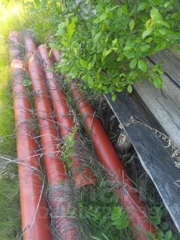 Вбиты трубы для строительства дома, сделана подготовка под фундамент.