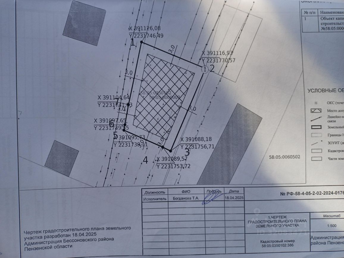 Кадастровый номер - 58:05:0350102:386