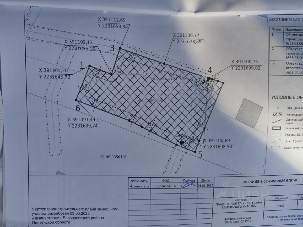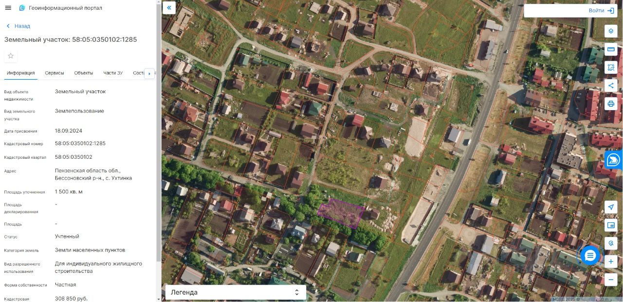 Кадастровый номер - 58:05:0350102:1285