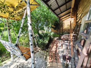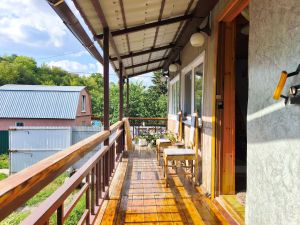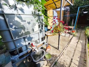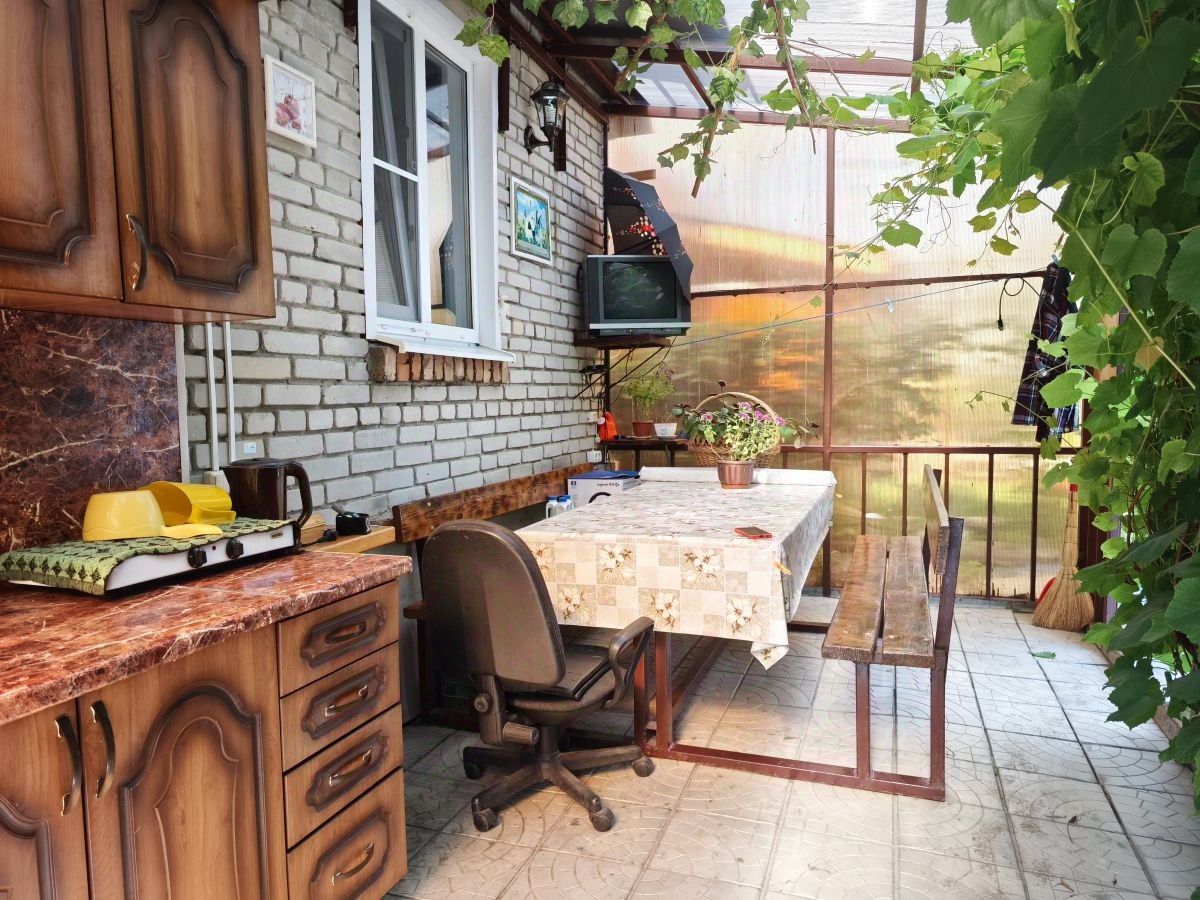 На участке так же имеется домик 57.4 кв.м., кирпичный, имеет 3 комнаты. Проведено электричество, есть водяная скважина, баня, душ, летняя кухня, гараж.