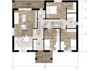 Кухня-гостиная площадью 29 м² с выходом на уютную веранду