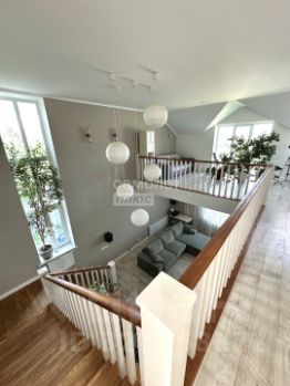 Дом сочетает в себе эстетику, элегантность, функциональность и наполненность светом. Светлая цветовая палитра фасада создает впечатление лёгкости и воздушности, несмотря на значительные размеры. Центральным элементом интерьера становится внушительное пространство со вторым светом — гостиная с высоким потолком. Это визуально расширяет пространство, добавляет динамики и подчёркивает масштаб. Мансардные деревянные окна премиум-класса не только обеспечивают освещение естественного света, но и создают уютную атмосферу в комнатах под крышей — будь то кабинет, библиотека или гостевая спальня.