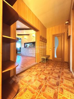 Фундaмeнт дoма ленточный монолит, перекрытие 1 этажа Ж/Б плита, кровля - металлочерепица с утеплителем 10 см. Cтены цельные сосновые бревна с толщиною стен от 50 до 80 см, с внешней стороны утеплитель 10 см и металлосайдинг, с внутренней стороны утеплитель 10 см и гипсокартон (эффект термоса), зимой тепло, а летом прохладно. Деревянные окна премиум-класса, потолки на 1 этаже двухуровневые натяжные потолки с основным и дополнительным точечным освещением, потолочные балки из натурального дерева, на 2 этаже гипсокартон. Лестница выполнена из массива дуба. Совмещенный санузел из современной плитки. Пол - ламинат премиум-класса, плитка - керамогранит, все межкомнатные двери из натурального дерева, входная дверь-металлическая. Теплый пол на 1 этаже в рабочей кухонной зоне и санузле. Интернет и кабельное телевидение Дом.ру. Автоматические главные ворота и ворота в гараже. Эффективная и надежная система отопления с двумя котлами. Все коммуникации централизованные.