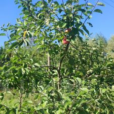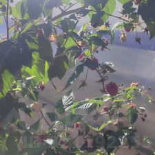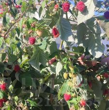 На территории огорода много новых плодоносящих культурных насаждений: красная и черная смородина, крыжовник, тархун, ремонтантная клубника, земляника и малина, которые плодоносят до сентября включительно. Так же есть черная рябина, слива, груши и яблони. Весь дом просто утопает в цветах!