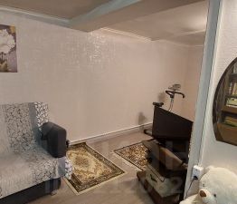 Дом построен в 1980 году из бревен, в дальнейшем делались пристрои из кирпича и блоков. На 1 этаже расположены 3 комнаты , кухня, санузел. На 2 этаж ведет отдельная лестница, там расположены 2 просторные комнаты и столовая зона.
