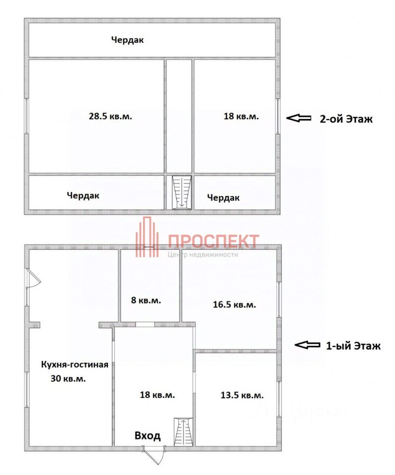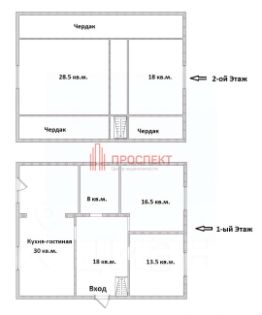 На 2-ом этаже по проекту 2 спальни (28.5 и 18 кв.м.)
