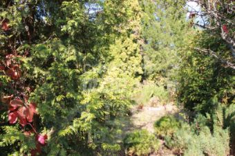 На участке взрослые туи можжевельник и лиственница. Есть фруктовые насаждения. Виноград. Есть место для огорода и зоны барбекю.