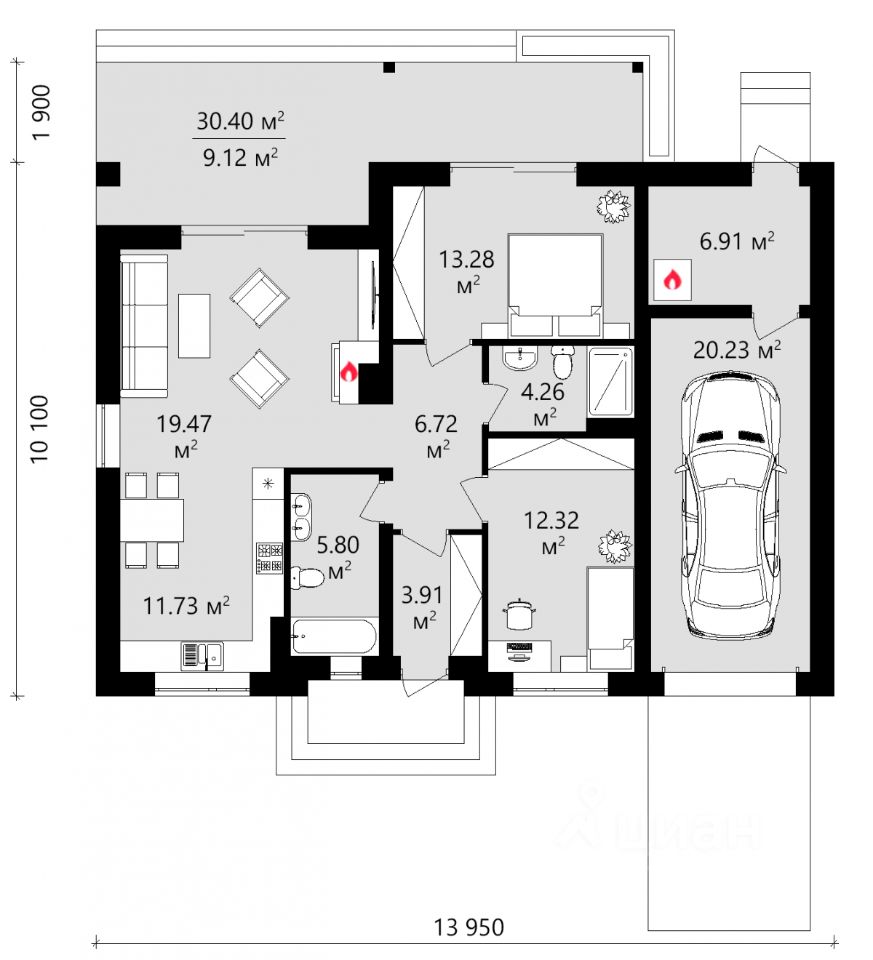 Общая площадь - 114 кв.м