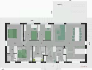 Современный просторный дом с функциональной планировкой, высокие потолки: просторная кухня-гостиная (56 кв.м.) с выходом на обустроенную террасу; котельная; 4 жилые комнаты, одна из которых мастер-спальня с собственным с/у и гардеробной; большая ванная комната, холл, прихожая.