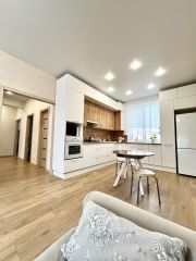 Выполнен с использованием премиальных материалов: идеально ровные стены, высокие потолки 3м., современная сантехника, продуманное освещение.