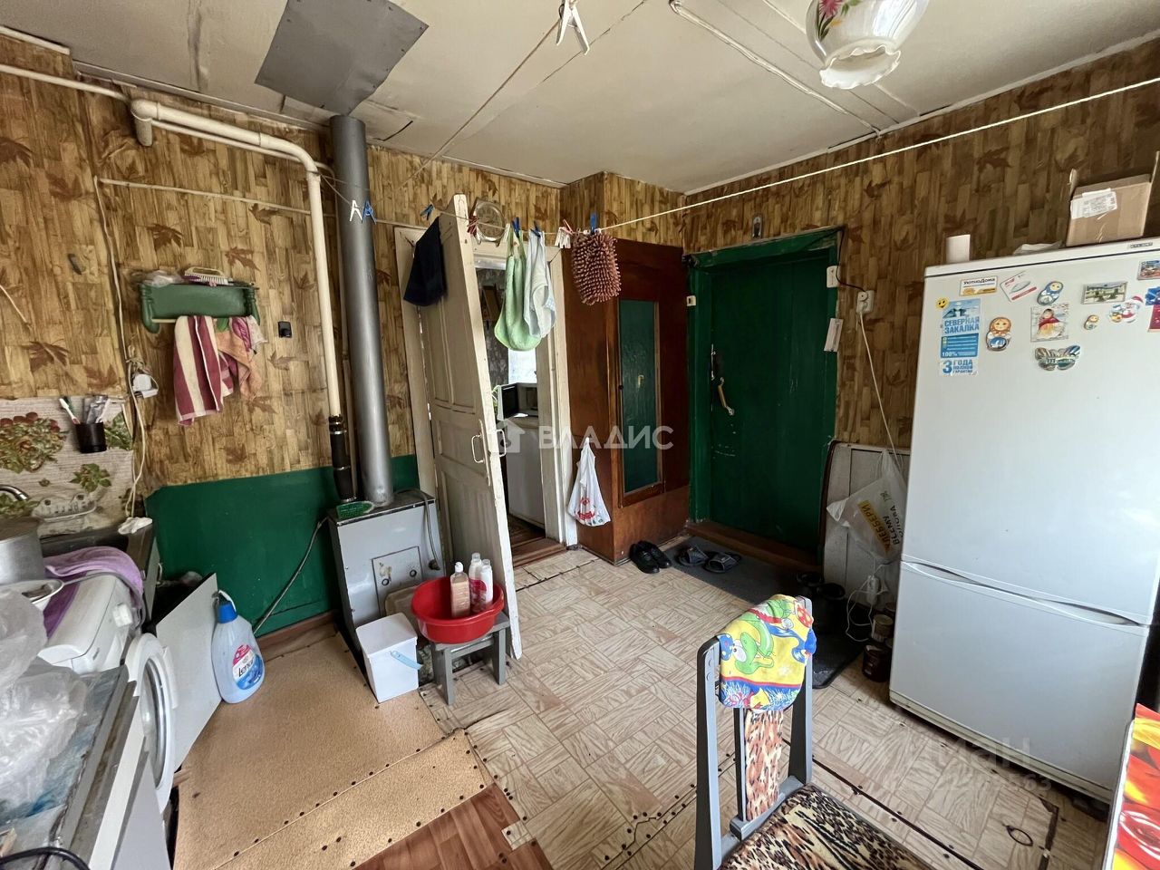 - Планировка: дом имеет 4 комнаты, высота потолков 2,5 м, что добавляет пространству воздуха и свободы. Дом построен из дерева, перекрытия также деревянные, кровля — шифер.