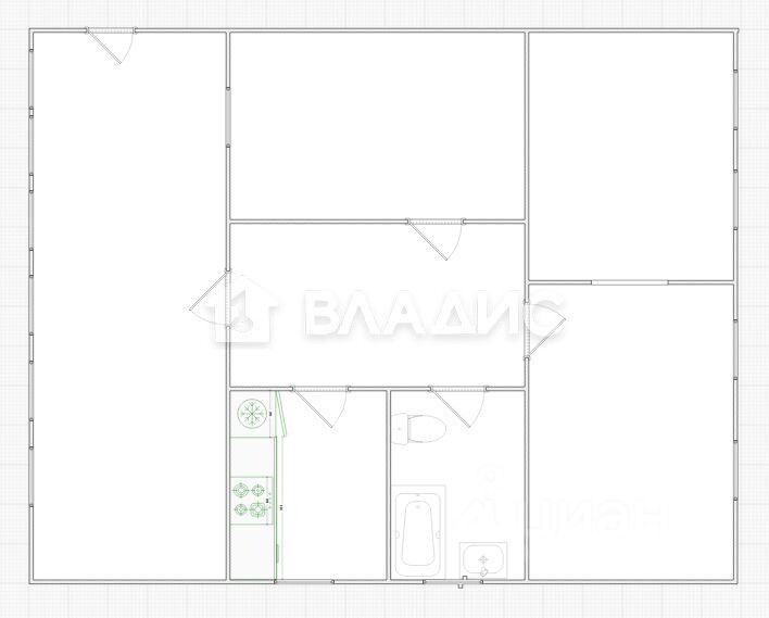 В доме на 1 этаже: 3 жилых комнаты, холл, кухня, санузел, а также просторная веранда.