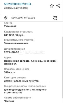 Площадь участка 7,49 сотки.