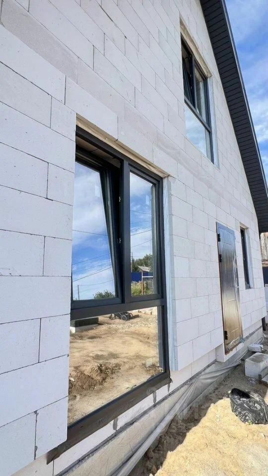 - Окна — ламинированные по внешней стороне в профиле 75 мм.