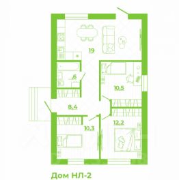 Планировка подразумевает три полноценных комнаты и большую кухню-гостиную. Какую роль будут выполнять комнаты — решать только вам. Это могут быть детские, комнаты отдыха или мастерские для работы.