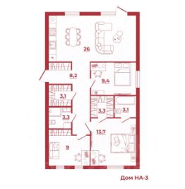 В данной планировке предусмотрена даже дополнительная комната, которая может служить кабинетом, игровой или комнатой для хобби.