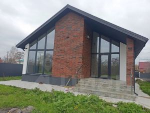 - Фасад — декоративная штукатурка с колером в сочетании с облицовочным кирпичом.