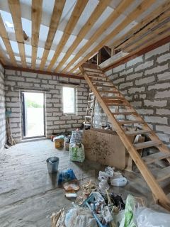 - на 1 этаже межкомнатные перегородки: 3 изолированные комнаты(17,2 кв.м, 14,3 кв.м и 15,6 кв.м), просторная кухня - гостиная, веранда с выходом на участок,