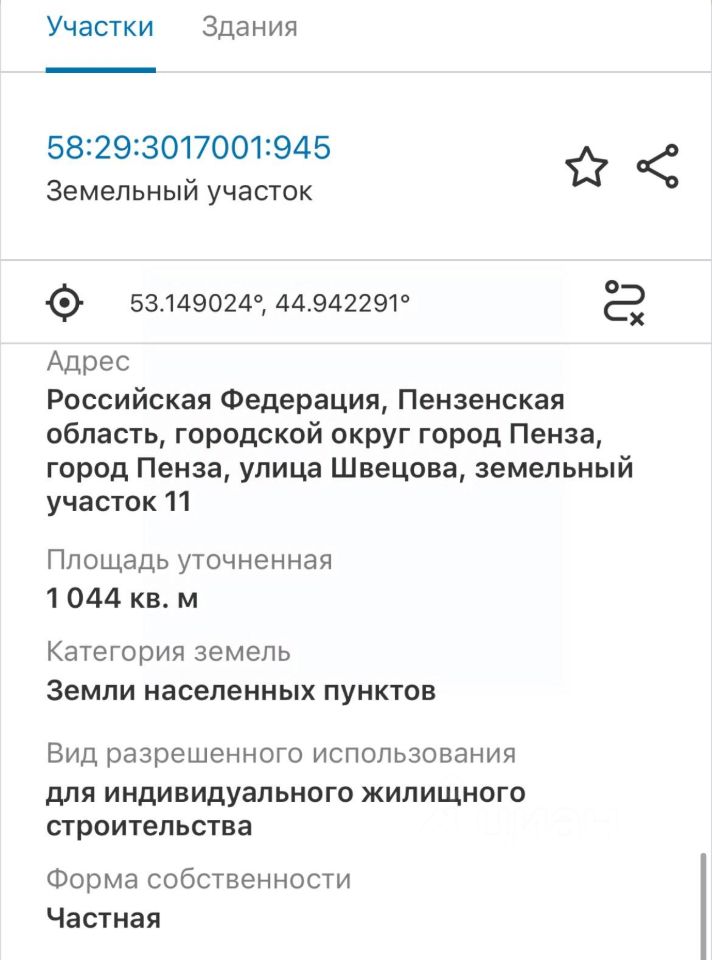 Кадастровый номер 58:29:3017001:945