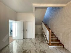1-й этаж: - прихожая (10 кв.м) - гардеробная (12 кв.м) - холл (20 кв.м) - кабинет (18 кв.м) - кухня-гостиная (70 кв.м) - с/у (5 кв.м)