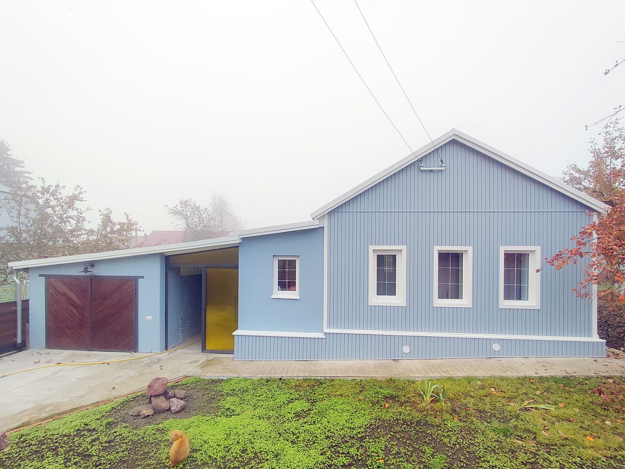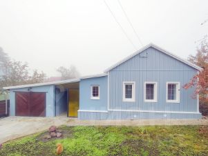 Продаётся удобный дом на тихой улице в десяти минутах езды от центра. Рядом находится остановка 10й маршрутки, в пяти минутах ходьбы магазин Магнит. Дом свободно расположен на ухоженном участке с небольшим уклоном и организованной системой водоотведения. Помимо основного дома, на участе есть гараж и баня (без внутренней отделки). Между основным домом и гаражом устроена крытая входная зона, переходящая в террасу. Мощение отмостки, дорожек и парковочной площадки выполнено из бетона.
